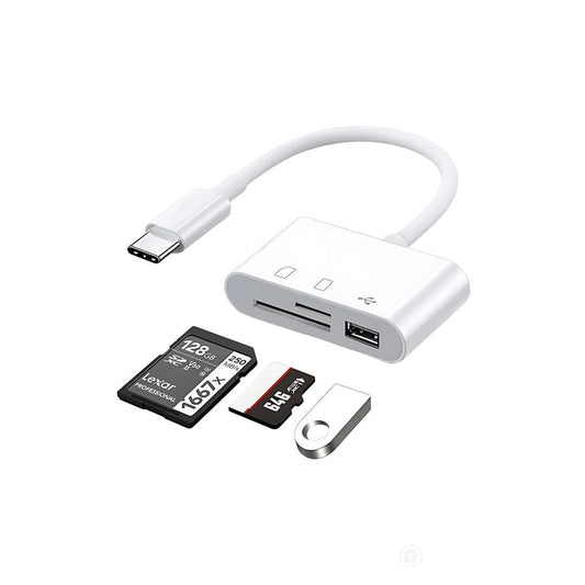 3-in-1 Type-C Card Reader – Micro SD/TF Memory Card & USB Adapter for Laptop, Tablet & OTG Devices